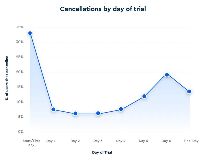 Whilst it may seem counterintuitive to help people cancel, in general, they’ll still churn if that’s their intent. It may be after a few unwanted payments but it’s also why Blinkist saw that 33% of all cancellations were happening on Day Zero, right after users started their trial.